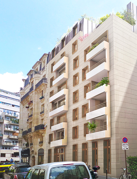 Une architecture d’exception en harmonie avec l’haussmannien. Une façade en pierre de taille rythmée par des balcons et garde-corps métalliques de couleur champagne qui apporteront à AMBRE une touche de modernité et de lumière.